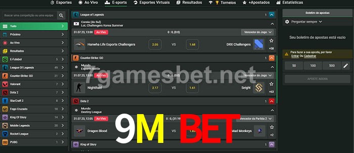 O 9M Bet oferece uma grande seleção de opções de apostas em e-sports com probabilidades competitivas